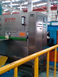 2007年公司通過引進國外先進的靜電涂裝技術,結合國內各類中小型金屬板(帶、絲)冷軋機組的實際應用情況,成功的研發出XCTZ-3型系列金屬板(帶)冷軋靜電涂油機、XCTZ-H101焊絲靜電涂油機、XCTZ-D刀帶靜電涂油機,其高壓力微流量雙流體霧化靜電涂油技術已在國內處于領先地位.每平米0.3克(單面)的涂油量已在實際應用中得到滿意的效果.